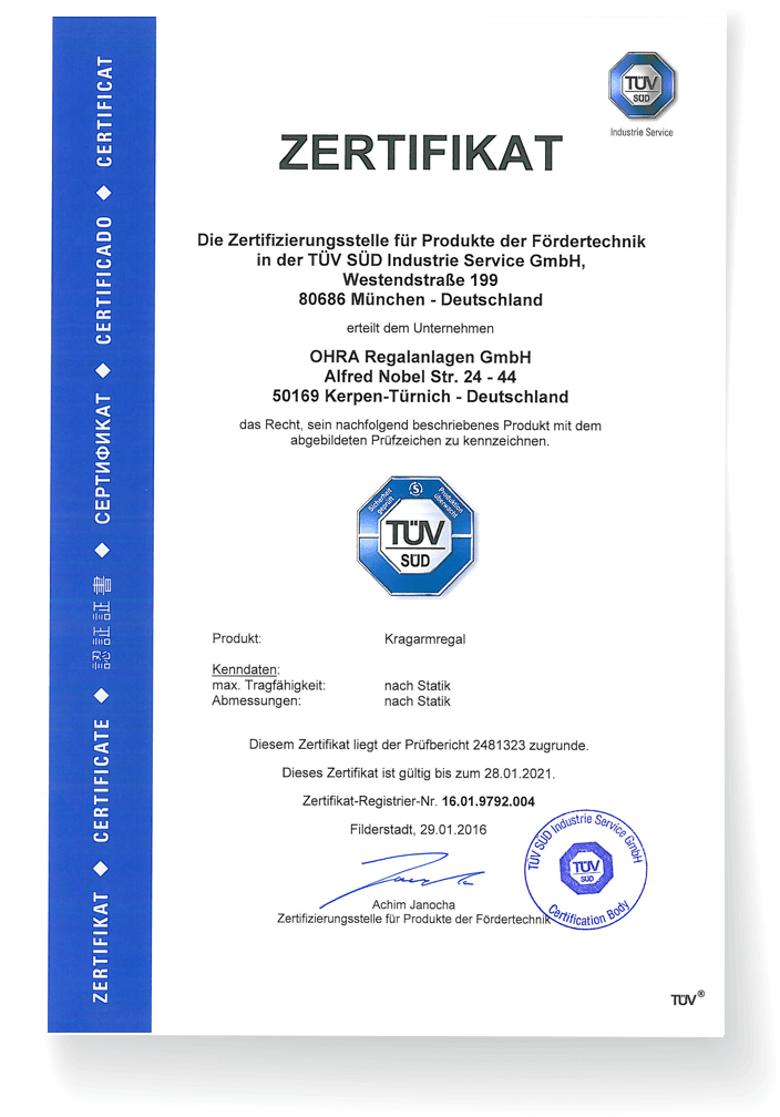 Peu importe votre secteur d'activité vous : OHRA est votre partenaire compétent et digne de confiance pour toutes les questions concernant la technique de stockage et votre spécialiste des systèmes de stockage dans toute l'Europe.