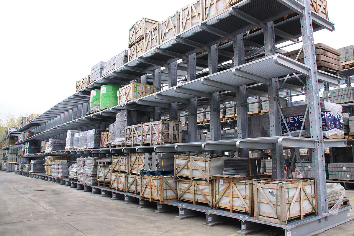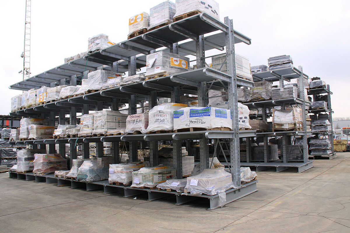 Pendant de nombreuses années, les articles insensibles aux conditions météorologiques, tels que les pièces en béton préfabriqué ou les pavés, étaient stockés en plein air à même le sol. Cependant, le chiffre d'affaire augmentant et le portefeuille de produits s'étoffant, ce mode de stockage s'avéra de plus avoir l'efficacité requise : Impossible d'utiliser de façon optimale la surface extérieure disponible, le manque de clarté au niveau de l'entreposage entraînant d'énormes pertes de temps avant d'avoir accès à l'article souhaité et le stockage non protégé se traduisant par des dommages coûteux aux marchandises.