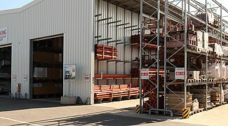 Dans le cadre d’une fusion entre deux sites, BAUKING réorganisa aussi sur son site de LORUP l’entreposage de ses produits en bois. Dans un hall flambant neuf à systèmes de rayonnages cantilever OHRA, les clients du distributeur de matériaux de construction trouveront aujourd’hui dans un endroit centralisé toutes les marchandises souhaitées. Le système à rayonnages offre des capacités nettement plus grandes, qui permet à BAUKING de stocker un plus grand nombre d'articles. Afin de drainer la zone de stockage extérieure en toute sécurité, la plaque de fond servant de structure de base au hall présente une pente de 0,7 pour cent dans les deux directions. La suspension des bras cantilever dans une colonne perforée étroite et une structure de toit flexible spéciale permirent à OHRA de compenser la pente.