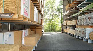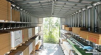 Avant la réorganisation de la zone de stockage, les produits en bois de Lorup étaient répartis dans diverses zones du site, c’est-à-dire en partie dans le hall principal et en partie dans la zone extérieure sans aucune une protection contre les intempéries. La longueur des poutres et lattes entreposées était restreinte en raison de l’emplacement, les capacités de stockage atteignaient quasi leurs limites.