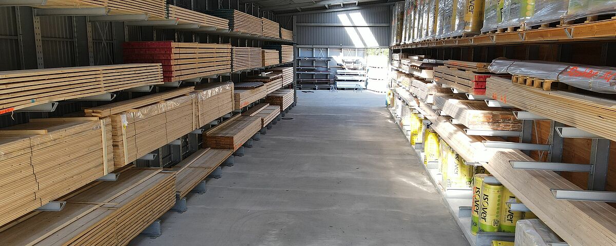Nos clients attendent en outre de plus en plus de matériaux de construction qu'ils soient stockés à l'abri des intempéries, explique Thomas Walter. C'est ce que permettent entre autres les halls de rayonnage qu'OHRA a construits sur les deux sites de la société. Les rayonnages cantilever servent en même temps de structure porteuse pour le toit et les murs - ce qui est plus économique et plus rapide à réaliser que la construction d'un hall séparé dans lequel les rayonnages sont ensuite placés. OHRA a également équipé d'autres rayonnages extérieurs avec un toit intégré. OHRA a également fourni les calculs statiques et la planification nécessaires à l'obtention du permis, ce qui a permis de clore rapidement la procédure.