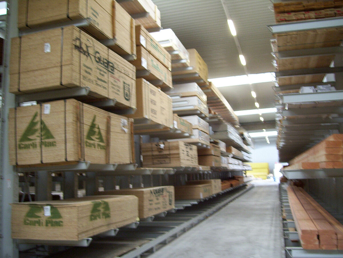 En deux semaines seulement, les experts de Kerpen montèrent alors 236 emplacements d'entreposage pour bois de construction massifs et bois stratifiés dans des rangées de rayonnages à bras portants de 40 et 50 mètres de longueur et 6,2 mètres de haut. Il se créa ainsi, au total, 2 800 mètres linéaires de niveaux de stockage pour bois en longueur. Parallèlement, 300 emplacements intégrés dans des rayonnages pour palettes et à bras portants, sur lesquels sont entreposés les matériaux en palettes et l'assortiment de base, virent le jour. L'exploitation de l'entrepôt fait appel à deux chargeurs latéraux Hubtex et à un chariot élévateur frontal Linde. Au cours des six premiers mois après la mise en service, ce ne sont pas moins de quelque 3 300 mètres cubes de bois qui changèrent de place.