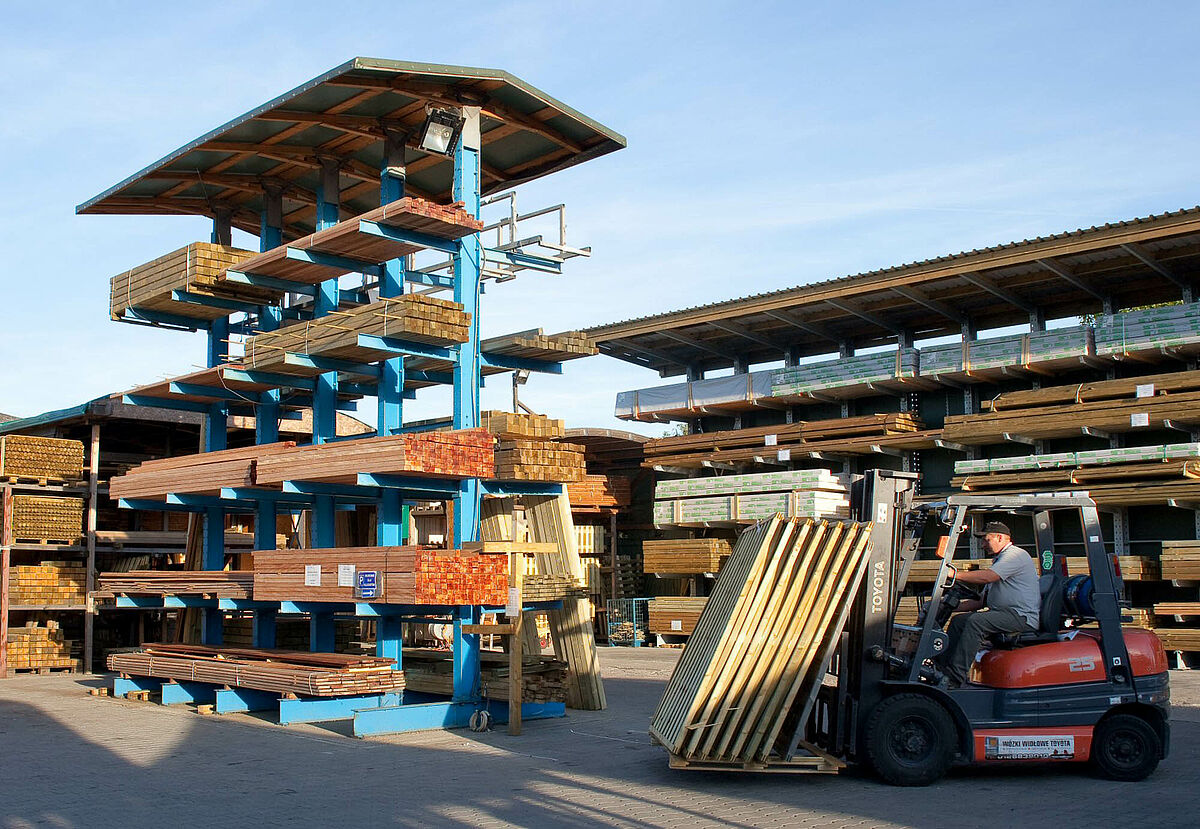 Un assortiment de produits ne cessant de s'étoffer et une hausse du nombre de clients sur le stock furent les raisons, pour l'entreprise polonaise de commerce en bois Dombal, de moderniser le stockage de ses bois de construction. Ils firent appel à des rayonnages à bras portants d'OHRA qui, non seulement, grâce au toit intégré, protègent les marchandises contre les intempéries mais permettent également, de par leur construction robuste, aux clients et au personnel de stocker en toute sécurité de lourds colis de bois.