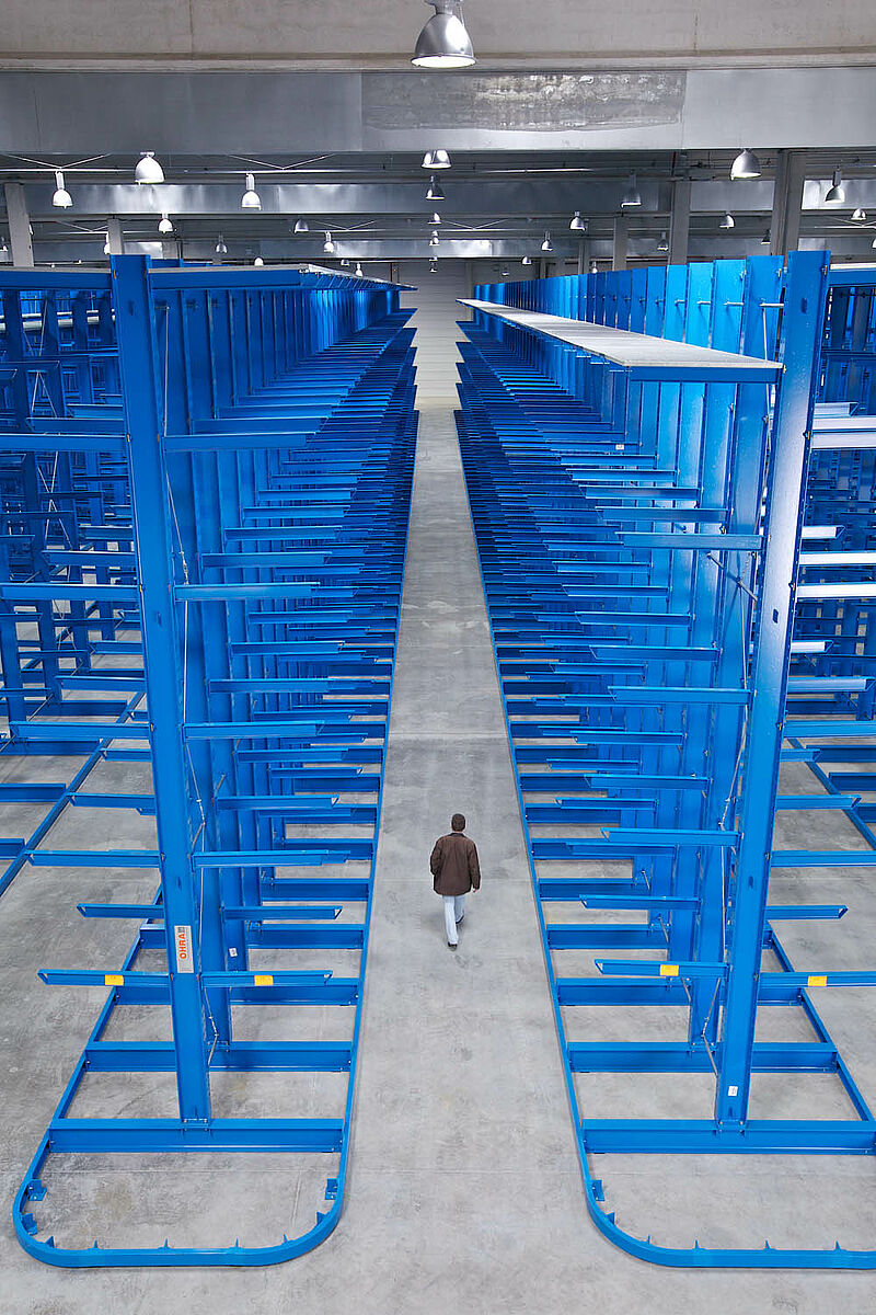 DORAS a confié la construction des systèmes de rayonnage à la société allemande « OHRA Regalanlagen GmbH » basée à Kerpen, à proximité de Cologne. Cette entreprise s’est spécialisée dans la construction de systèmes de rayonnage et de stockage pour le commerce de matériaux de construction, du bois et de ses dérivés et des métaux. Lors de la planification du système de rayonnage à bras portants pour allée étroite, les responsables DORAS ont tout particulièrement apprécié le savoir-faire de la succursale française d’OHRA, qui s'était déjà vu confier des projets d’envergure identique.
