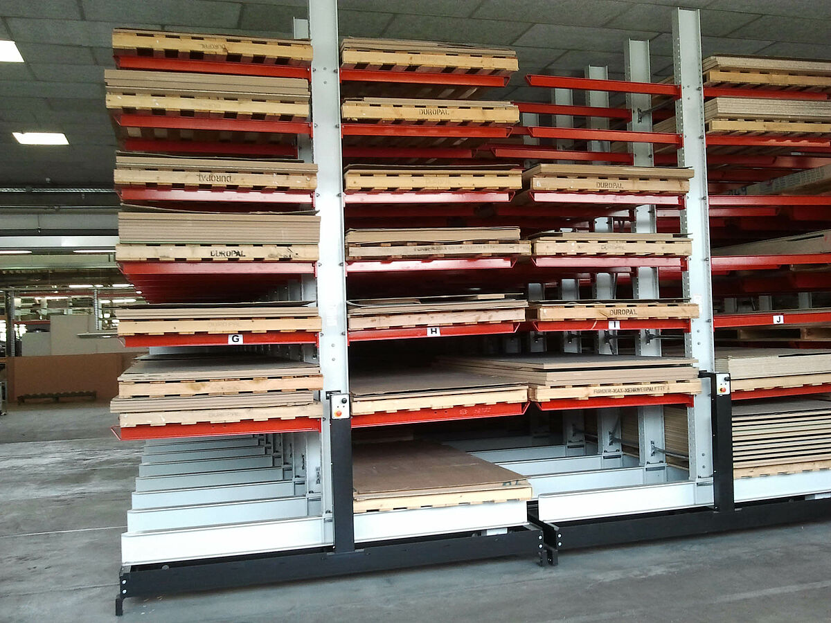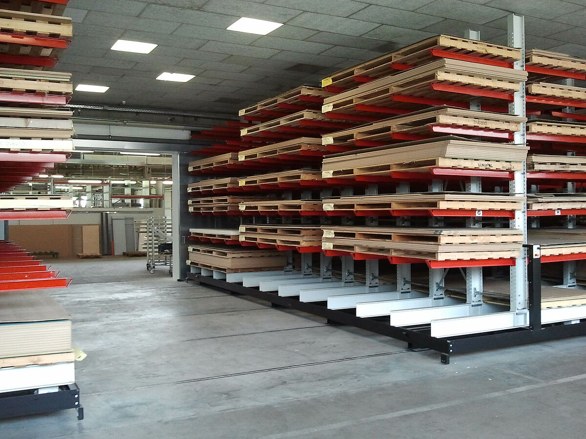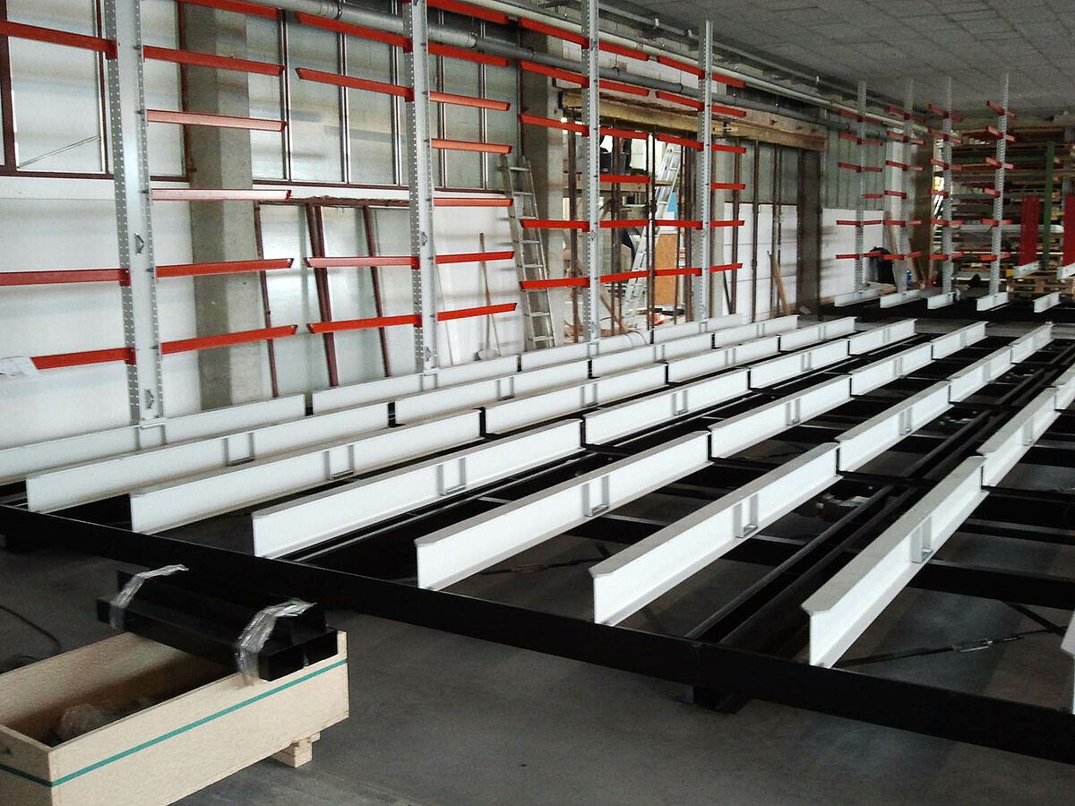 erform trouva son bonheur chez OHRA : Le spécialiste OHRA basé à Kerpen à proximité de Cologne en Allemagne, propose un système dont les étagères sont montées sur des supports mobiles. Ces rayonnages coulissants permettent d'accroître les capacités de stockage de presque 100% par rapport aux rayonnages fixes classiques. Les experts OHRA ont monté chez erform une installation composée de cinq rayonnages à bras portants double face de 9 mètres de long. Sept niveaux de stockage ont été réalisés pour une hauteur de 4080 millimètres. En plus de ces rayonnages sur base mobile, un rayonnage fixe simple offre une surface de stockage supplémentaire.