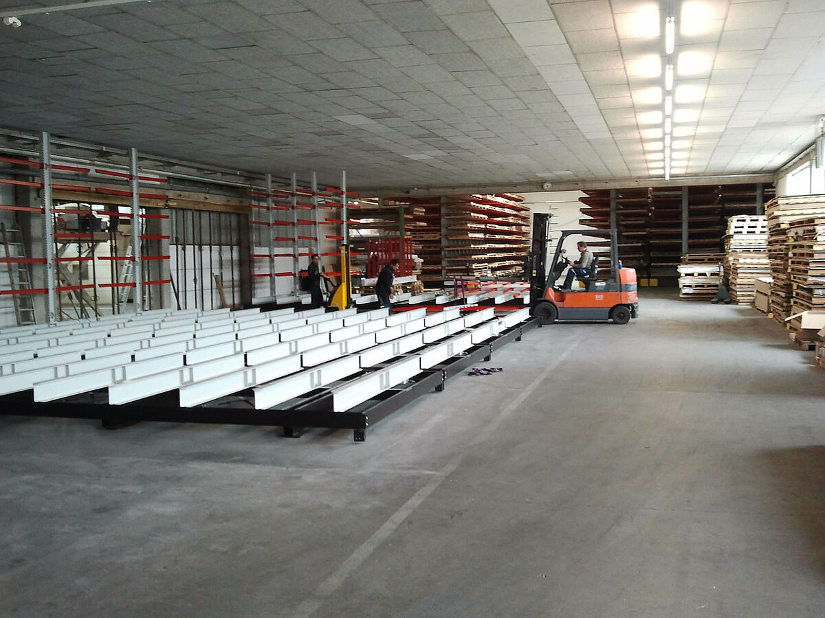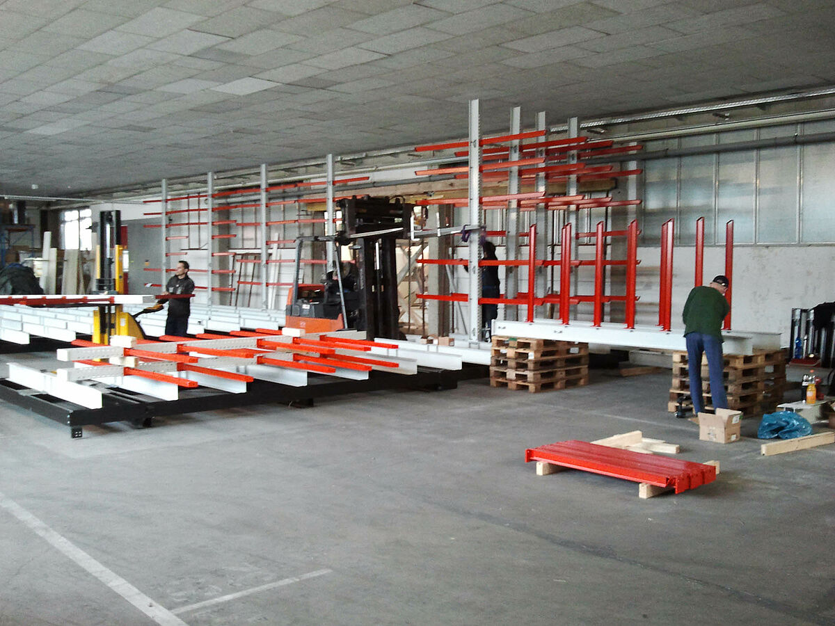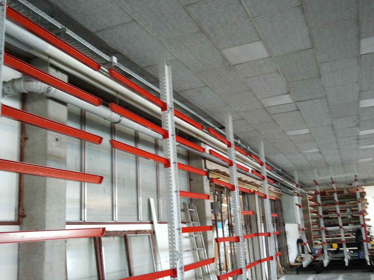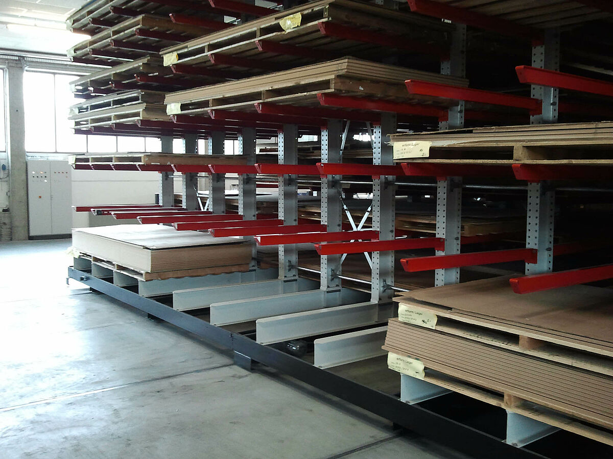 erform trouva son bonheur chez OHRA : Le spécialiste OHRA basé à Kerpen à proximité de Cologne en Allemagne, propose un système dont les étagères sont montées sur des supports mobiles. Ces rayonnages coulissants permettent d'accroître les capacités de stockage de presque 100% par rapport aux rayonnages fixes classiques. Les experts OHRA ont monté chez erform une installation composée de cinq rayonnages à bras portants double face de 9 mètres de long. Sept niveaux de stockage ont été réalisés pour une hauteur de 4080 millimètres. En plus de ces rayonnages sur base mobile, un rayonnage fixe simple offre une surface de stockage supplémentaire.