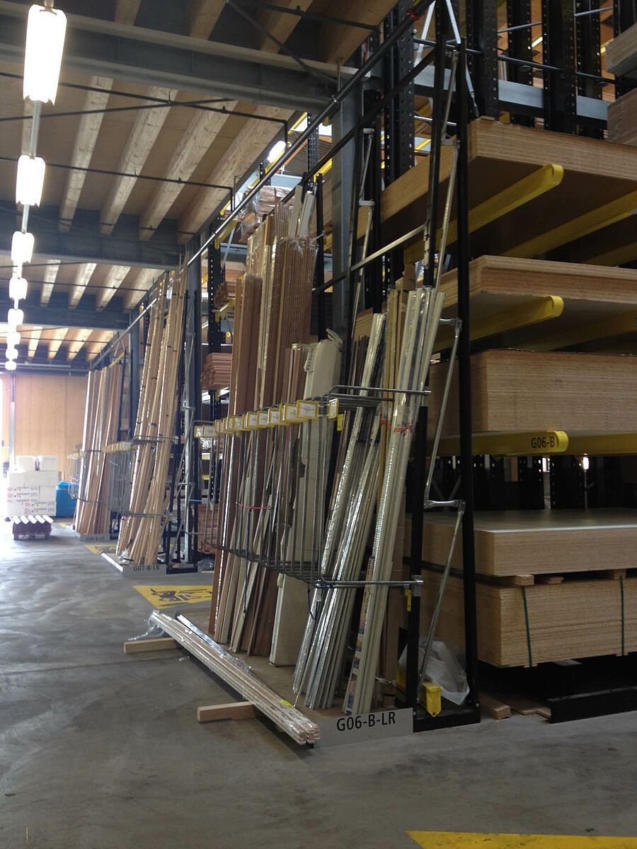 HG COMMERCIALE (HGC), l'une des principales sociétés commerciales suisses du bâtiment a agrandi son bureau de vente, sis à Bienne (canton de Neuchâtel), avec des systèmes de rayonnages d'OHRA. Une combinaison sur mesure de rayonnages à bras portants, à palettes et d'étagères verticales peut accueillir un large éventail de matériaux de construction. L'entrepôt couvert a été conçu comme type de stockage traversant (drive-through) - les clients traversent l'entrepôt dans un sens et retirent leurs marchandises directement des différents rayonnages.