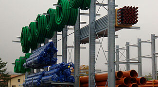 L'entrepôt de Cortaillod comprend un entrepôt en extérieur et un entrepôt de stockage sous abri installé dans un hall. Dans le hall, OHRA a monté près de 60 mètres de rayonnages à bras portants comportant six niveaux de stockage ainsi que des rayonnages à palettes permettant l'entreposage de 1 200 palettes. Le niveau d'entreposage supérieur du rayonnage à palettes se trouve à une hauteur de 7,1 mètres. Le rayonnage à palettes se trouvant en extérieur peut accueillir 600 palettes supplémentaires. 60 mètres linéaires de rayonnages à bras portants additionnels ont été montés dans l'entrepôt en extérieur aux fins du stockage de marchandises de forte longueur. Les rayonnages verticaux permettent également un stockage méthodique des barres, profilés et autres tuyaux et tubes.