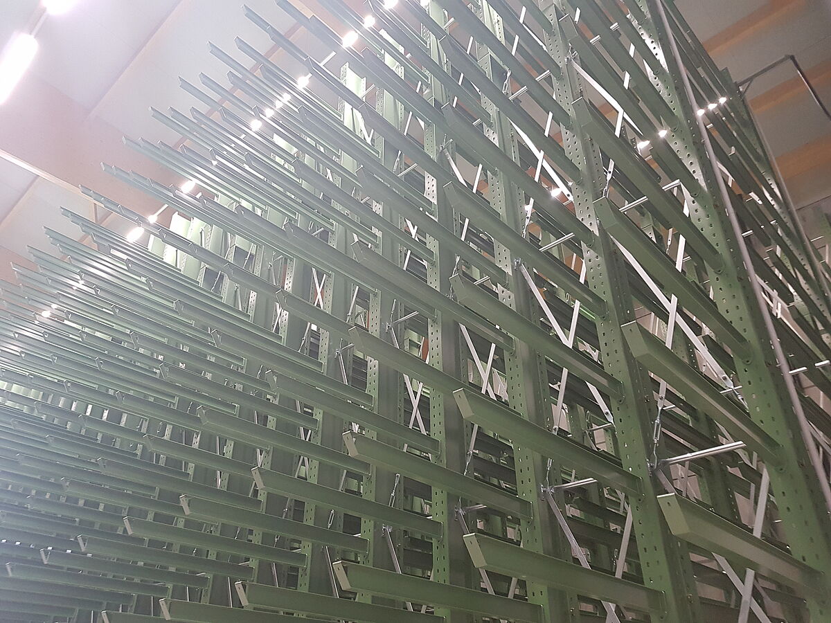 OHRA a équipé l'entrepôt de quatre rayonnages à bras en porte-à-faux double-face montés sur des chariots. Sur chaque côté frontal de l’entrepôt est installé un rayonnage á bras en porte en faux supplémentaire. Ces derniers constituent en quelque sorte le cadre du dispositif de rayonnage mobile. Chacun des rayonnages mobiles mesure 34 mètres de long et presque 11 mètres de haut Pour atteindre les hautes capacités de charge nécessaires, chacun des 35 supports de rayonnage est composé de 450 profils IPE - les profils les plus robustes de la gamme OHRA : Ils permettent une capacité de charge de 19,2 tonnes sur 13 niveaux de stockage Au total, chaque rangée de rayonnages mobiles dispose d’une capacité de stockage de 750 tonnes - avec un poids à vide de 720 tonnes pour l'ensemble du système de rayonnage. Avec le nouveau système de rayonnage, les clients de Karl Pichler peuvent accéder à une plus large palette de produits en un temps record - et ceci en gardant la même superficie d’entreposage.