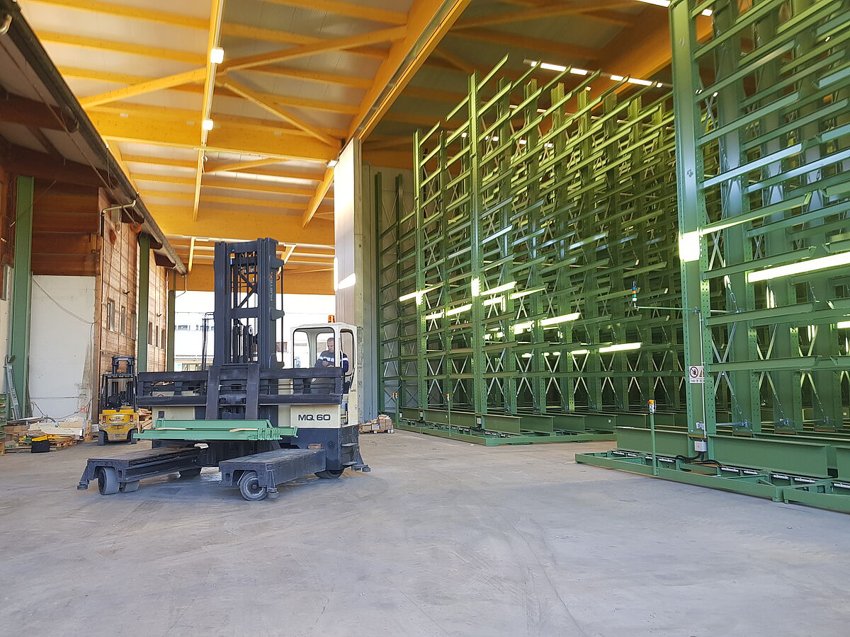 Afin d’améliorer la disponibilité de ses marchandises et d’obtenir plus d’espace pour une gamme plus étendue de produits, le grossiste en bois de la région du Trentin-Haut-Adige, Karl Pichler, a modernisé sa scierie avec un dispositif de rayonnage mobile d’OHRA. Le nouvel entrepôt offre une capacité de stockage de 130 charges de camion. Chacun des quatre rayonnages doubles dispose d’une capacité de stockage allant jusqu’à 750 tonnes - avec un poids propre de 720 tonnes pour l'ensemble du système de rayonnage. Le montage des rayonnages sur des chariots permet un stockage particulièrement peu encombrant et offre un accès rapide aux articles stockés tout en les préservant.