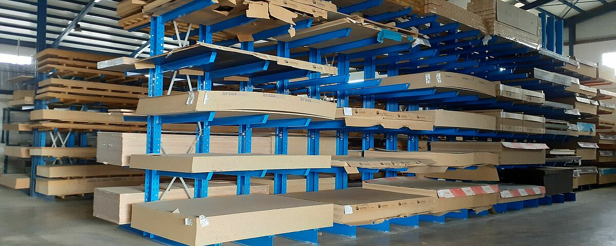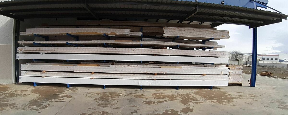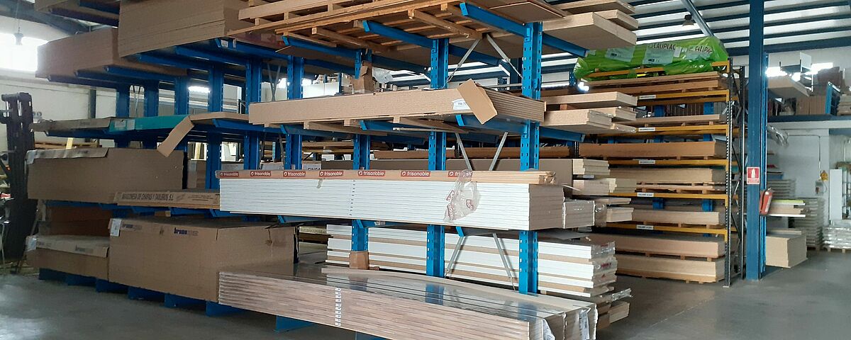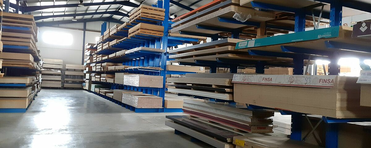 Grâce au nouveau système de rayonnage, OHRA a considérablement optimisé l’espace, notamment en adaptant une rangée de rayonnage à la quantité et aux dimensions de lots de panneaux de bois disponibles chez Maderas Fanega : en effet, l'entreprise stocke plus de 30 paquets de panneaux 2440 x 1220 mm, et 30 autres de 2850mm x 2100mm. Une installation non adaptée aurait occupé beaucoup d’espace, d’autant plus que le portefeuille d’articles ayant ces dimensions est limité. OHRA a donc équipé l’un des côtés de l’étagère avec un rayonnage de 1850 mm de long et l’autre côté avec un rayonnage de 1200 mm.  Afin d'assurer la stabilité de l'étagère malgré cette asymétrie, les montants ont été surdimensionnés en conséquence.