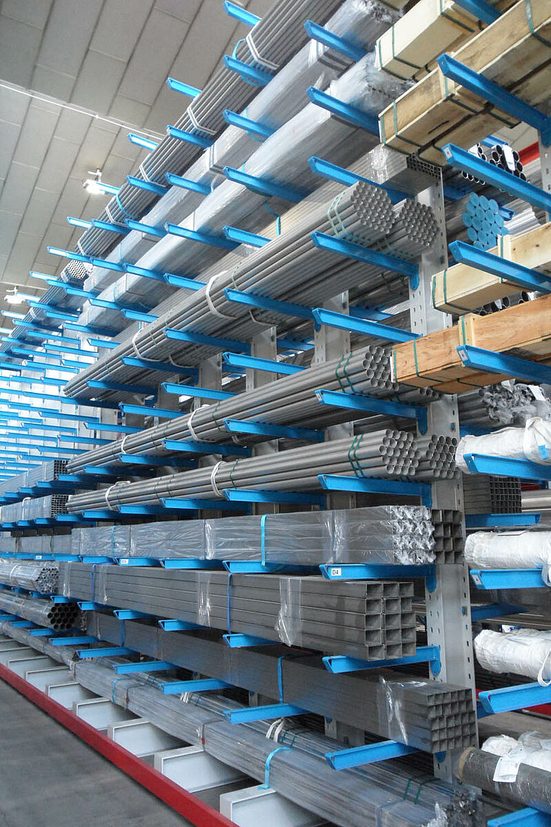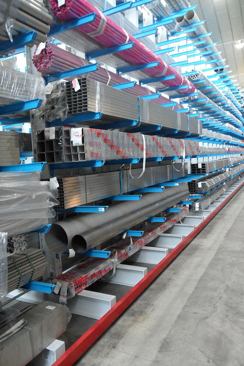 La société anonyme Notz Metall AG, l'un des négociants leaders suisses en acier inoxydable, a réalisé son nouvel entrepôt de marchandises avec les rayonnages à bras portants OHRA. Grâce à la construction à rayonnages en hauteur - le niveau supérieur maximal atteint une hauteur de 6,4 mètres - l'entreprise a pu accroître sa capacité de stockage sur une surface inférieure à celle de l'ancien système.