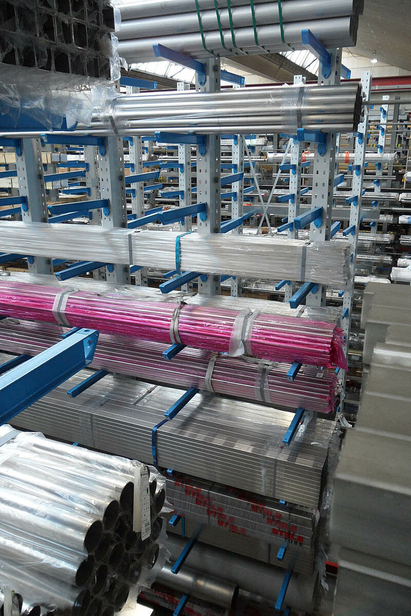 Notz a donc opté pour le système de rayonnages à bras portants OHRA. L'entreprise qui siège à Kerpen, en Allemagne, fabrique ses rayonnages à partir de robustes profilés en acier laminés à chaud qui permettent des hauteurs de construction et des capacités de charge importantes. De plus, les bras portants des rayonnages OHRA s'accrochent horizontalement dans un pas pratiqué dans les poutres, ils ne se vissent pas ni se soudent. Ce pas d'accrochage permet de modifier rapidement la hauteur des différents niveaux de stockage - le tout sans outillage. Cette flexibilité constitue justement une condition préalable à la multifonctionnalité du rayonnage requise par Notz ; enfin, des produits aussi variés que les barres, les tubes, les cornières, les aciers étirés, les pièces semi-ouvrées d'une longueurs de 3 et 6 mètres doivent y être stockés.