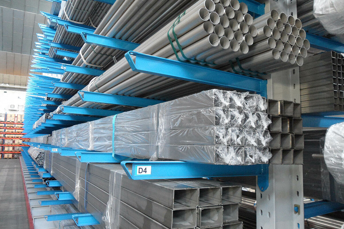 Entrepôt à rayonnages à bras portants pour le commerce d'acier inoxydable