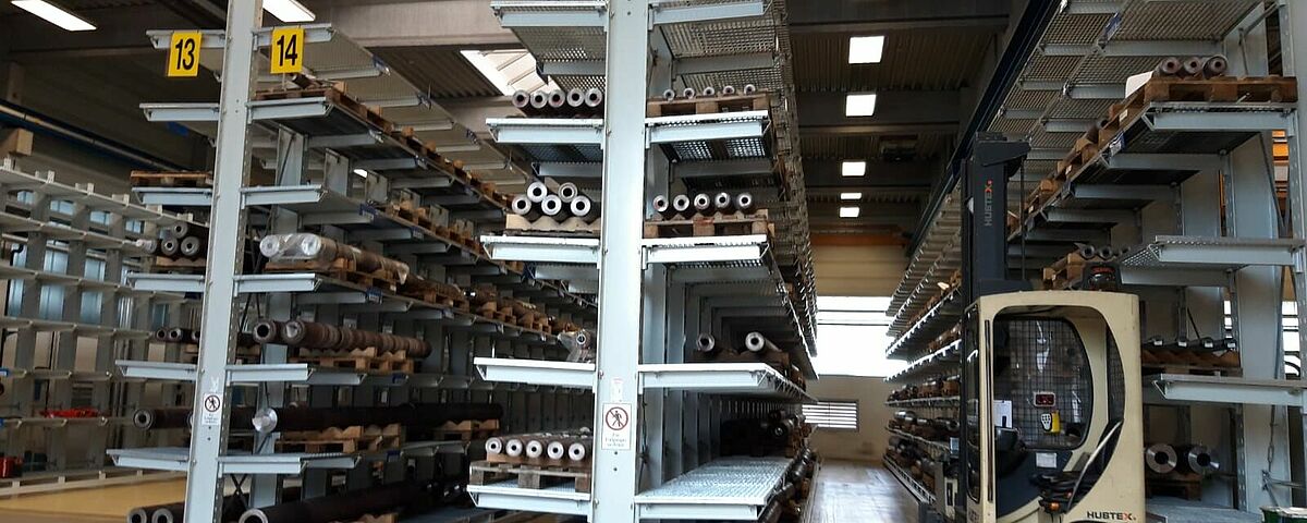 Reifenhäuser Reiloy a équipé à cet effet un entrepôt de 1.200 mètres carrés de rayonnages OHRA, l'un des leaders du marché européen de la technique de stockage pour charges lourdes. Les rayonnages cantilever et rayonnages à palettes en profilés d'acier laminés à chaud combinent des charges élevées avec une construction mince et peu encombrante. Dans l'entrepôt de Reifenhäuser Reiloy, OHRA a installé cinq rayonnages de 20 à 30 mètres de long, comprenant chacun sept niveaux de stockage. Chaque colonne de plus de 5,5 mètres de haut est conçue pour supporter une charge totale de 15 600 kilogrammes, chaque bras portant, de 800 millimètres de long, supporte jusqu'à 1 300 kilogrammes. Les bras portants sont suspendus de manière flexible et peuvent être réglés à tout moment, sans outil, pour s'adapter aux différentes hauteurs des marchandises stockées Pour éviter que les cylindres et les vis ne soient endommagés lors du stockage et du transport, Reifenhäuser Reiloy les stocke sur des palettes. C'est pourquoi OHRA a équipé les niveaux de stockage de plateaux grillagés. Chacun de ces plateaux peut supporter une charge de 1.600 kilogrammes par mètre carré. Ainsi, même les composants les plus lourds peuvent être stockés de manière flexible dans les rayonnages. La manipulation des rayonnages s'effectue de manière peu encombrante à l'aide d'un chariot élévateur latéral - des rails de guidage fixés aux pieds des rayonnages « guident » le chariot élévateur en toute sécurité à travers les allées.