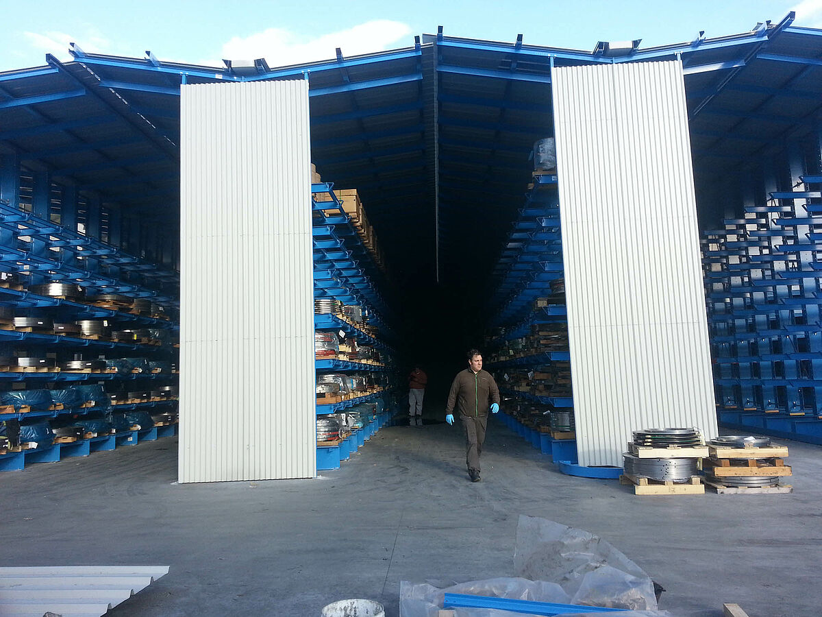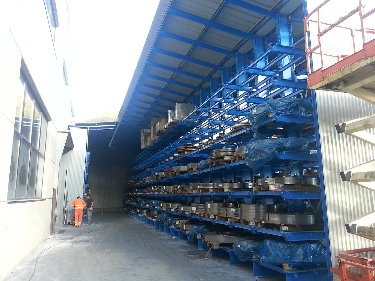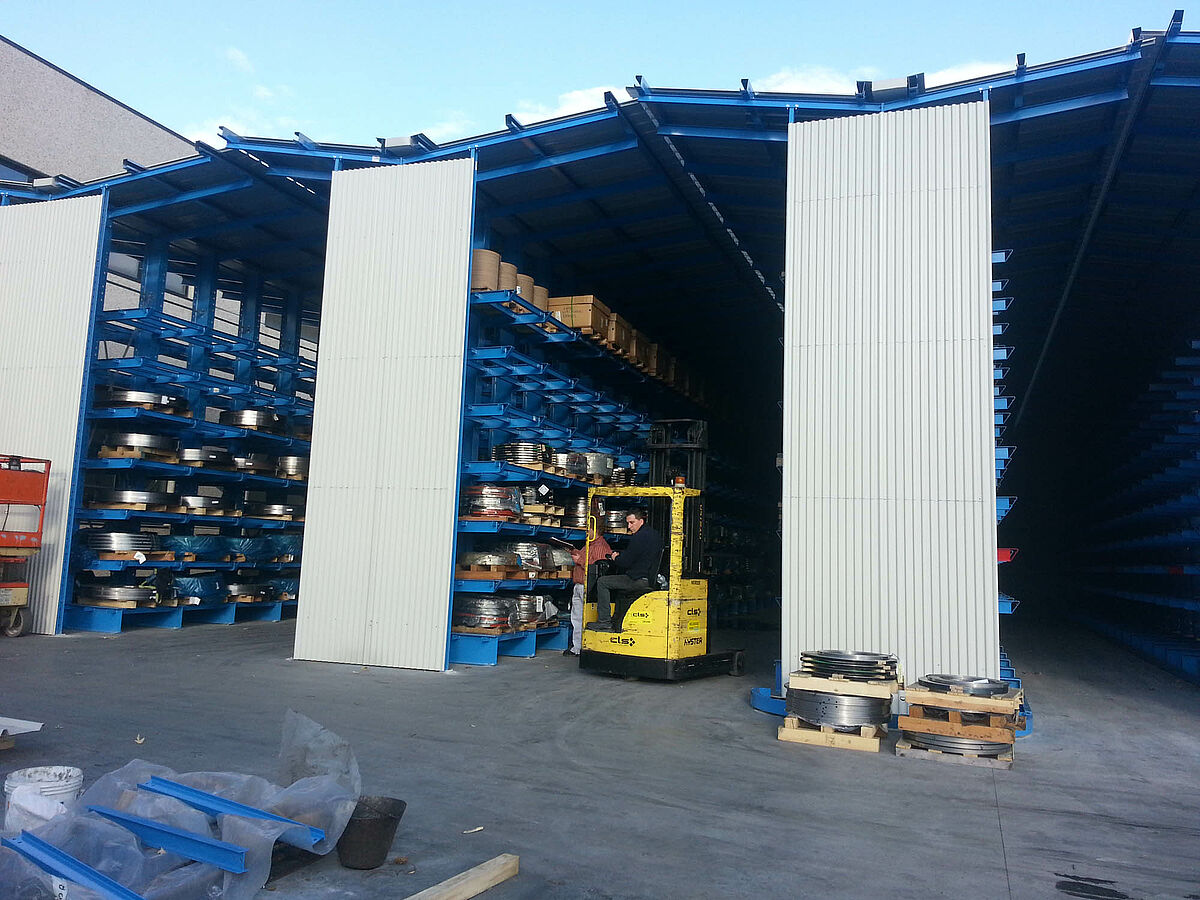 Rosa Catene fabrique sur le site de Caloziocorte des chaînes destinées aux applications agricoles, industrielles et commerciales. La croissance continue de l'entreprise a imposé la construction d'un nouveau dépôt de matériaux bruts pour des bandes de tôle palettisées et des barres d'acier ligaturées. OHRA a reçu la commande pour la construction de l'entrepôt : Le spécialiste des systèmes de rayonnage, basé à Kerpen, Allemagne, a convaincu Rosa Catene avec un concept suggérant que les montants des rayonnages à bras portants devaient tenir lieu de construction portante pour le hall. Dans le concept proposé, les éléments de toit des six rangées de rayonnage se chevauchent mutuellement, et constituent ainsi un entrepôt modulaire et entièrement couvert pouvant être agrandi ultérieurement sans problème. De plus, cette construction offre de nets avantages en termes de coûts et est plus vite dressé qu'un hall traditionnel.