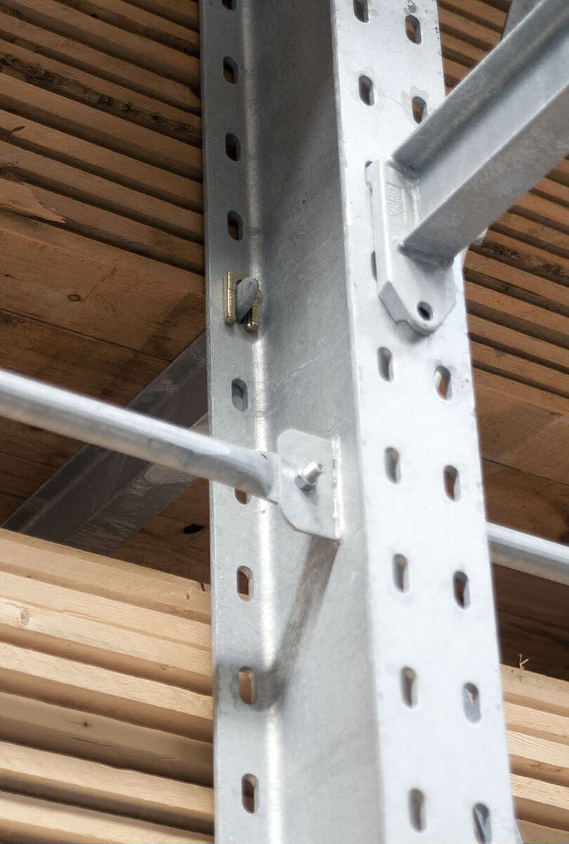 Dès le premier jour, Schyns opta pour des rayonnages à bras portants OHRA. Le premier aspect, qui ne peut que convaincre, est la robustesse du système – tous les éléments porteurs sont réalisés en acier laminé à chaud. Les profils affichent ainsi une certaine élasticité en cas d'accrochage et conservent leurs caractéristiques statiques même dans les conditions de stockage les plus difficiles. De plus, la construction stable permet des hauteurs de stockage élevées – chez Schyns, le niveau des rayonnages supérieurs se trouve à 6 mètres de hauteur. Et, pour finir, les bras portants des rayonnages OHRA ne sont pas soudés ou boulonnés aux montants, mais viennent s'y accrocher. Le bras peut, en cas de choc par chariot élévateur ou marchandise, amortir ce dernier, de sorte que tant le bras que la marchandise restent intacts. Les montants sont percés au pas de 100 mm, les bras portants venant s'accrocher de manière flexible dans la grille ainsi constituée. Les bras peuvent être ajustés sans nécessiter d'outils, de sorte que les rayonnages peuvent être adaptés rapidement aux nouvelles conditions.