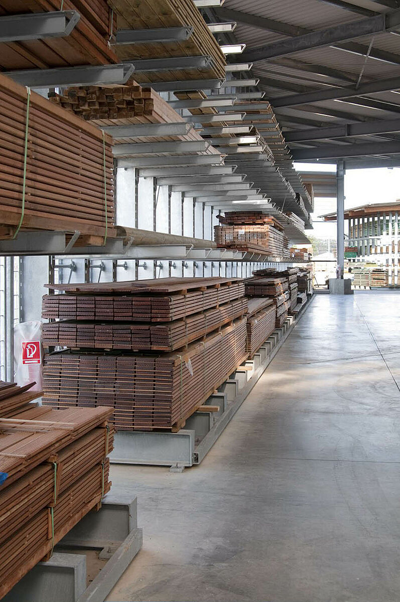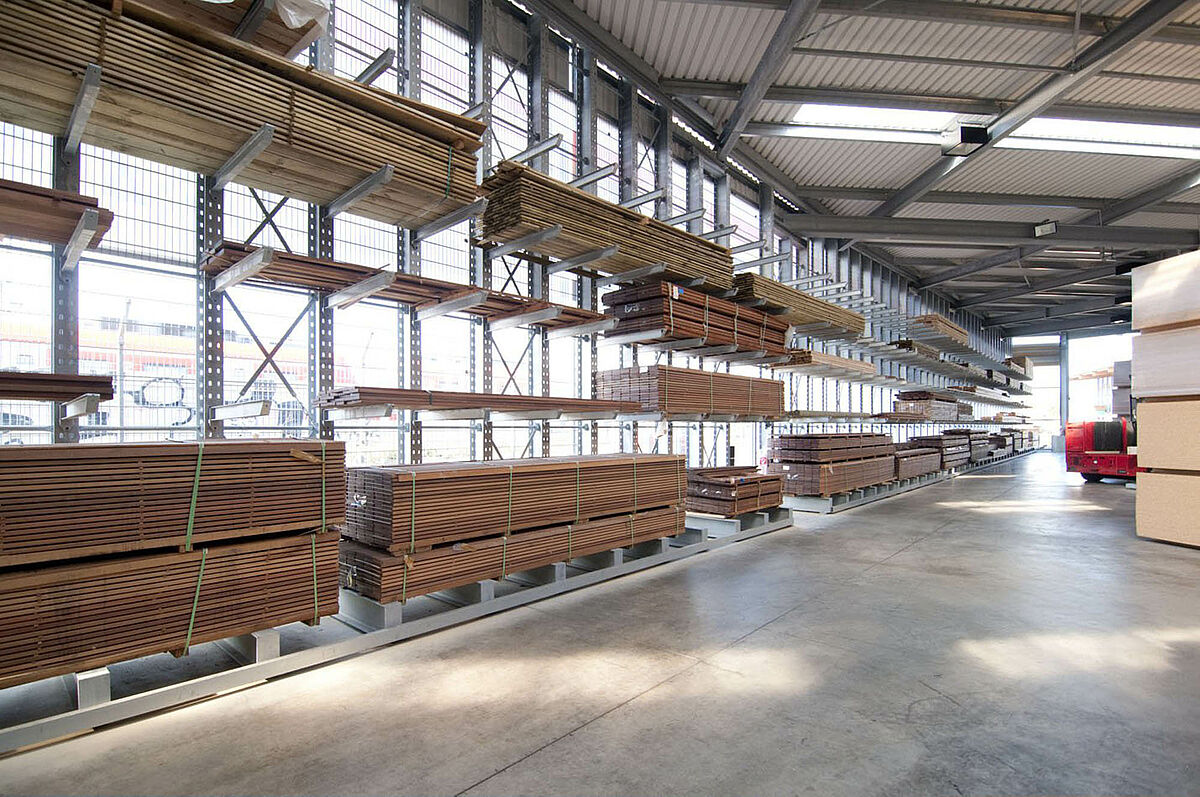 Schyns GmbH, basée à Siegburg, propose, en tant qu'entreprise de gros et de détail, une gamme complète de produits du bois, tant à des clients privés que commerciaux - palette allant des bois de construction massifs jusqu'à l'abri de jardin. Le stockage des produits du bois se fait dans un entrepôt à rayonnages qui n'a cessé de grandir tout au long d'une période de plus de 20 ans. Au cours de ces années, les différentes rangées de rayonnages individuelles devinrent un hall complet qui, pendant les années qui suivirent, doubla à son tour. C'est ainsi, que le département d'entreposage fut en état de suivre la croissance de l'entreprise.