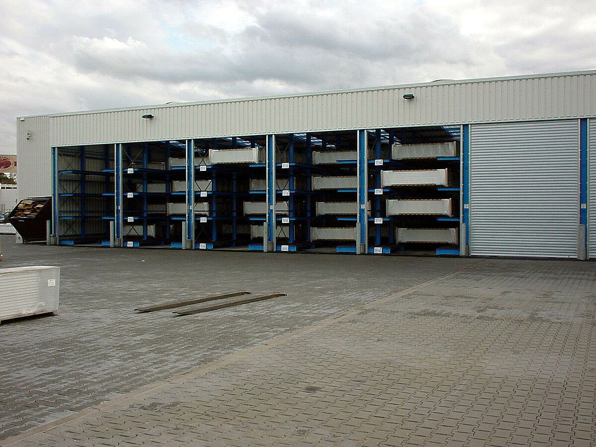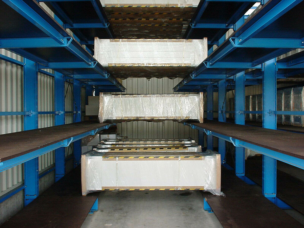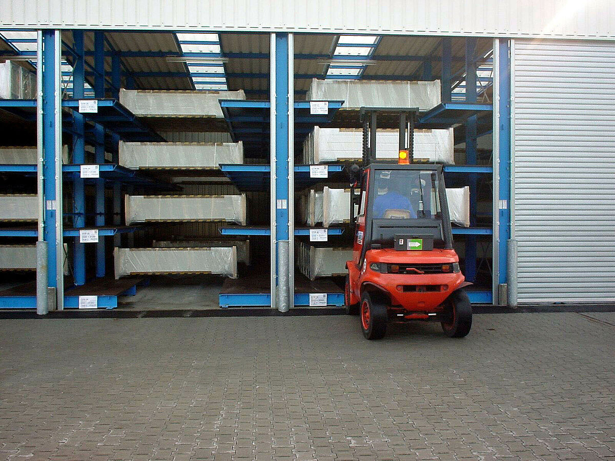 En raison d’un grand succès commercial, une extension de l’entrepôt des produits finis s’avère nécessaire, il faudra par ailleurs tenir compte des conditions particulières exigées par le stockage de séries limitées. Après une série d‘entretiens pour la planification, un nouvel ensemble de rayonnages drive-in a été conçu sur la base de rayonnages à bras portants, qui permet de stocker des portails d’une largeur de 4,2 m à 6,5 m.