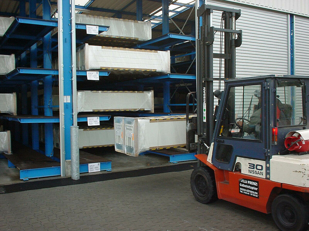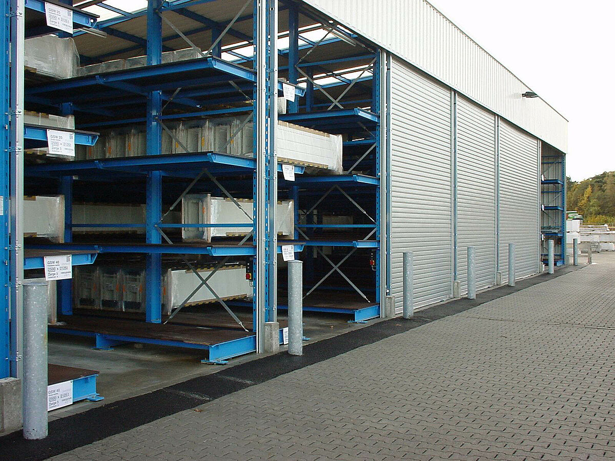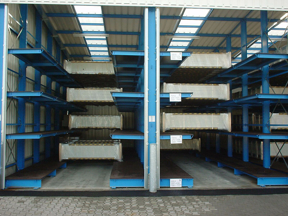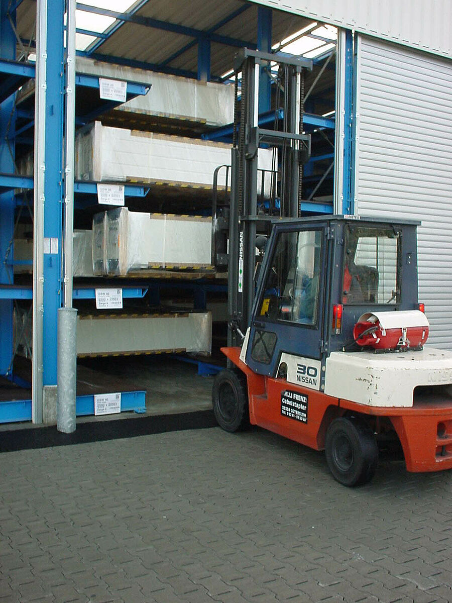 En raison d’un grand succès commercial, une extension de l’entrepôt des produits finis s’avère nécessaire, il faudra par ailleurs tenir compte des conditions particulières exigées par le stockage de séries limitées. Après une série d‘entretiens pour la planification, un nouvel ensemble de rayonnages drive-in a été conçu sur la base de rayonnages à bras portants, qui permet de stocker des portails d’une largeur de 4,2 m à 6,5 m.