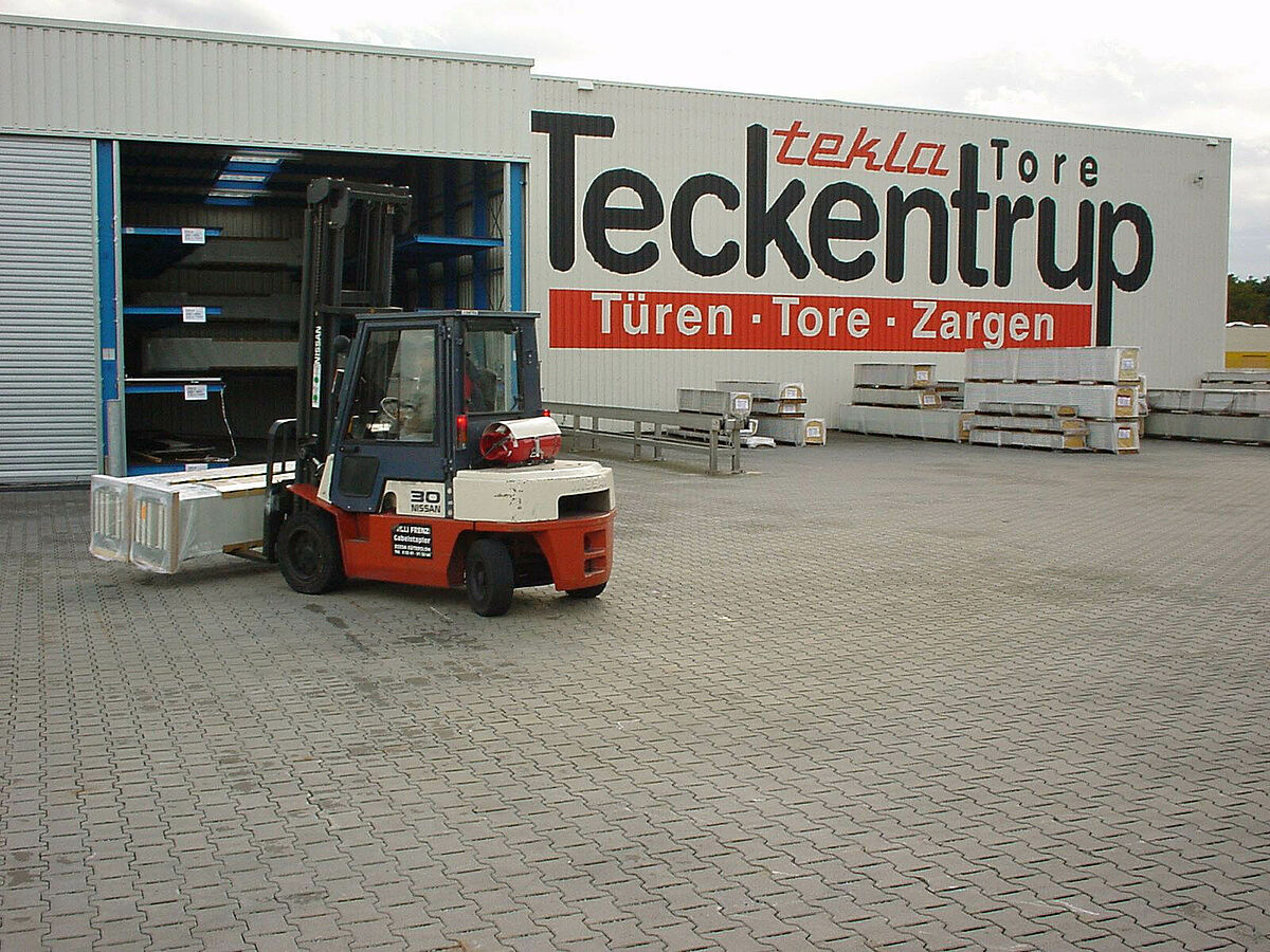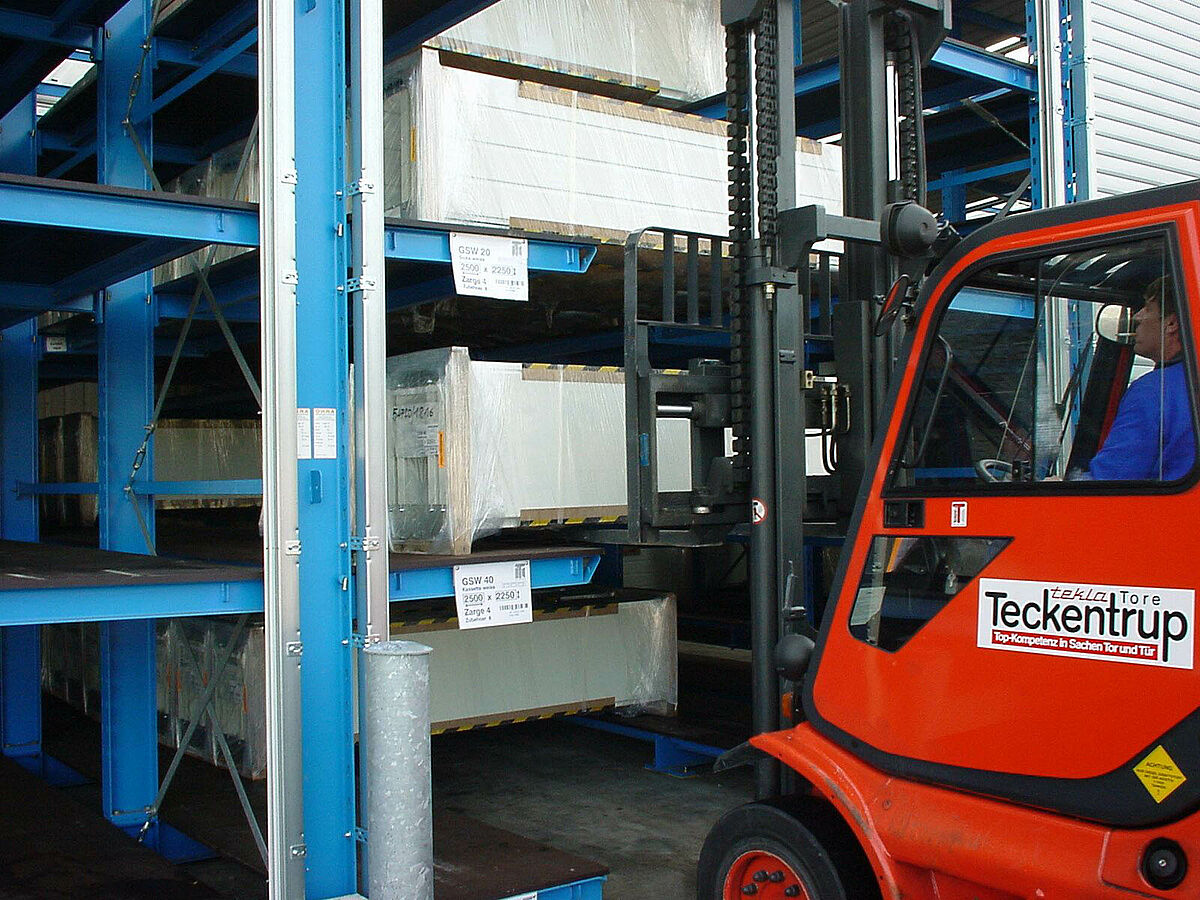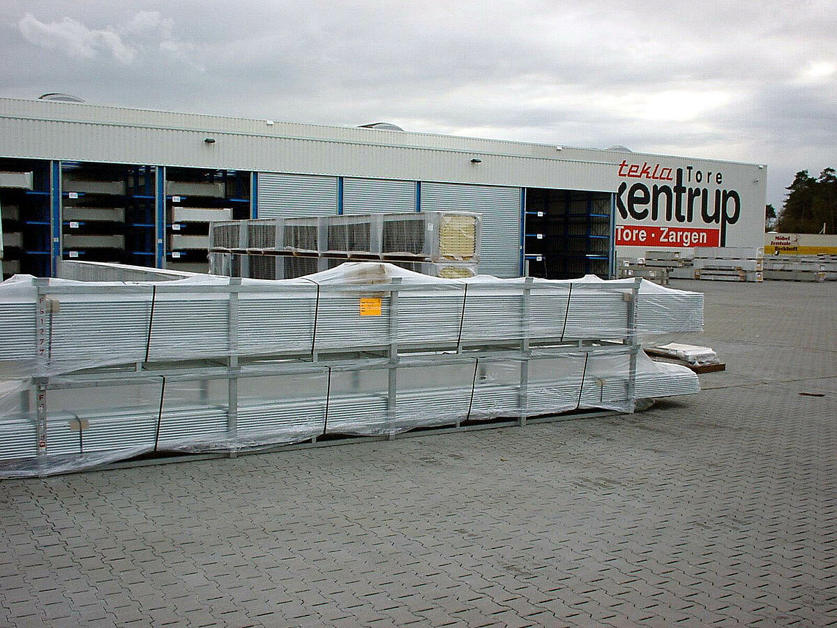 Tekla fabrique les portails en général un à un sur commande ou en petites quantités dans plusieurs régions d‘Allemagne. Les portes sectionnelles et portails coulissants quittent la production à Verl et sont en préparation de commandes tenus prêts pour l’expédition dans des rayonnages OHRA.