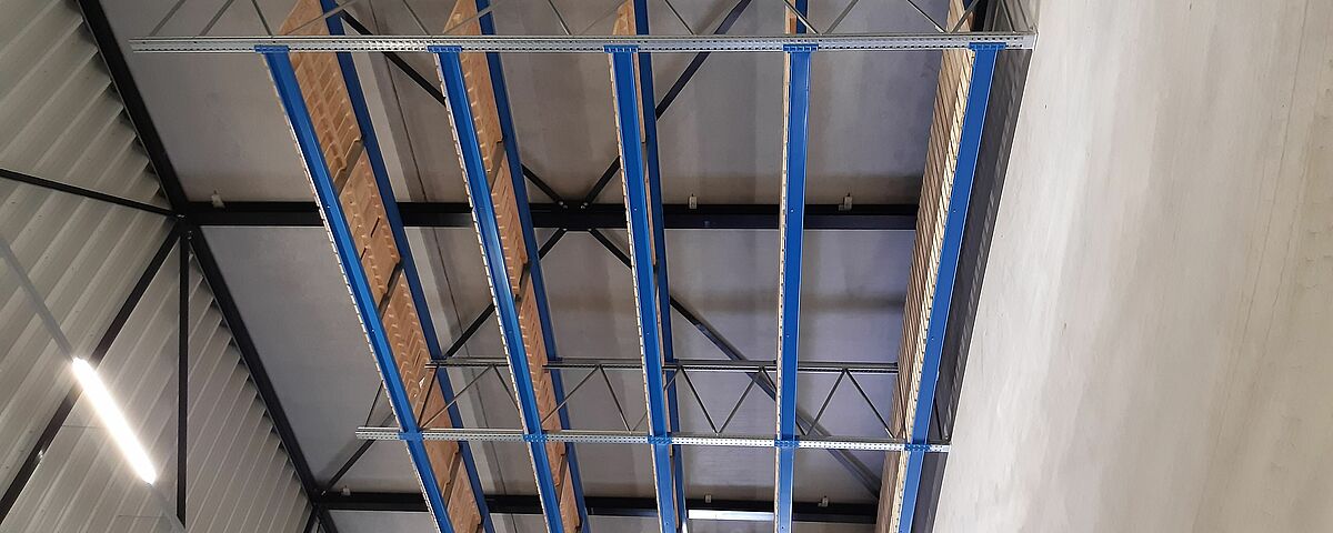 La version à allées étroites permet d'atteindre un haut degré d'utilisation de la surface, les rails de guidage aux pieds des rayonnages facilitent les manœuvres des chariots élévateurs dans les allées. Grâce à la construction performante en profilés d'acier laminés à chaud, les rayonnages permettent également d'exploiter pleinement la hauteur de la pièce : Les rayonnages à palettes atteignent une hauteur de 6600 millimètres, les rayonnages cantilever une hauteur de 6080 millimètres.