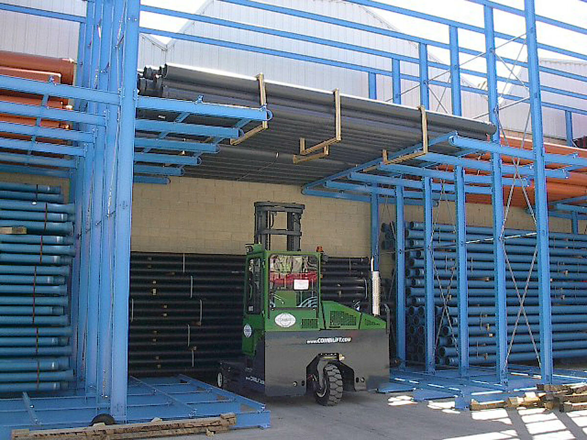 En plus, beaucoup d’espace était nécessaire pour le chargement et déchargement des camions, surtout à cause des chariots frontaux classiques utilisés par le client. La manutention de ces produits n’était plus du tout satisfaisant ; les tubes stockés par terre étaient vite endommagés et les accidents de manutention augmentaient.