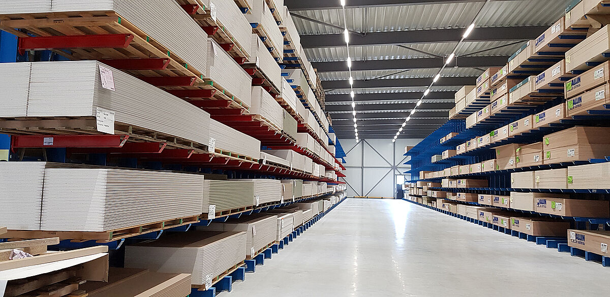 Verdouw Bouwproducten, l'un des plus grands grossistes de matériels de construction aux Pays-Bas, a équipé son centre logistique sur son site à Apeldoorn de rayonnages cantilevers et à palettes. Outre la qualité, la flexibilité d'utilisation et la facilité d'adaptation sont des atouts de taille pour une gamme de produits évolutive destinée aux systèmes de rayonnages. Il est possible de stocker les plus divers formats de palettes grâce aux caillebotis métalliques positionnés dans certains rayonnages cantilevers ou à palettes avec des largeurs de casier jusqu'à 4200 millimètres. Grâce aux emplacements intégrés dans les rayonnages cantilevers pour le stockage vertical, les portes et les cadres de fenêtres peuvent être prélevés du même rayonnage que les autres matériaux de construction.