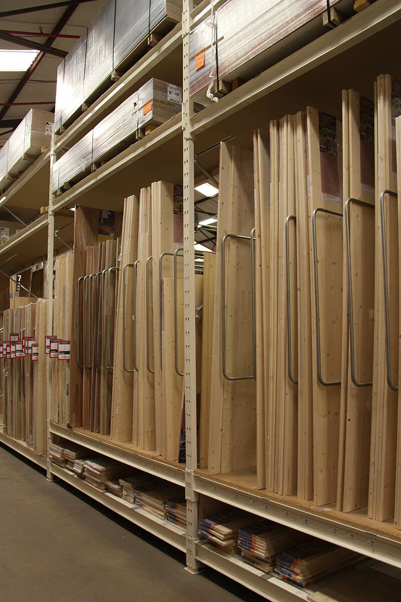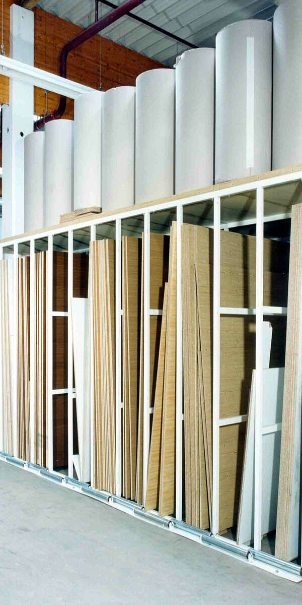 Les rayonnages verticaux sont, pour de nombreux articles comme les lattes, les profilés, les barres ou les tubes, la solution parfaite et conviviale. Les différents types et dimensions peuvent être présentés bien rangés et à portée de main dans l'entrepôt ou le magasin. Pour le stockage vertical de panneaux de bois près de la zone de découpe, il n'y a pas de meilleure alternative que le robuste rayonnage OHRA pour panneaux. Le système à emboîtement, avec ses tubes à section carrée, est éprouvé et durable. Des rouleaux de haut de gamme sont montés devant chaque compartiment afin de faciliter le stockage et le déstockage.