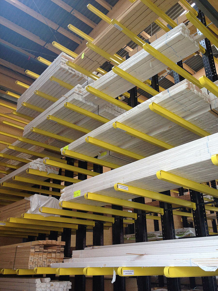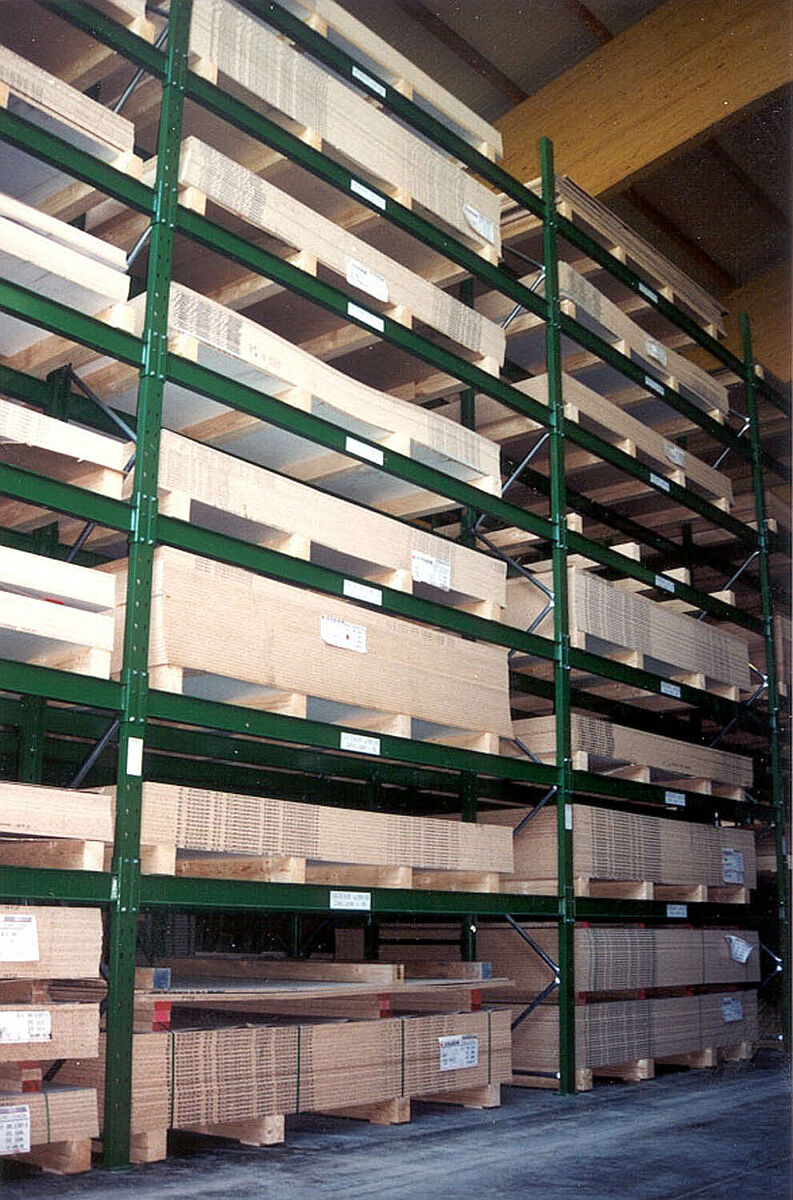 Le système de stockage idéal pour les matériaux longs, lourds ou encombrants à base de bois comme les panneaux, les avivés ou le bois massif. Les bras portants, flexibles et réglables en hauteur, s'écartent en cas de choc vers le haut ou le côté. Ce système protège ainsi votre marchandise contre les dommages. Autres produits tels que les rayonnages à palettes, rayonnages verticaux et rayonnages pour panneaux, complètent le programme pour le secteur du bois et ses dérivés.