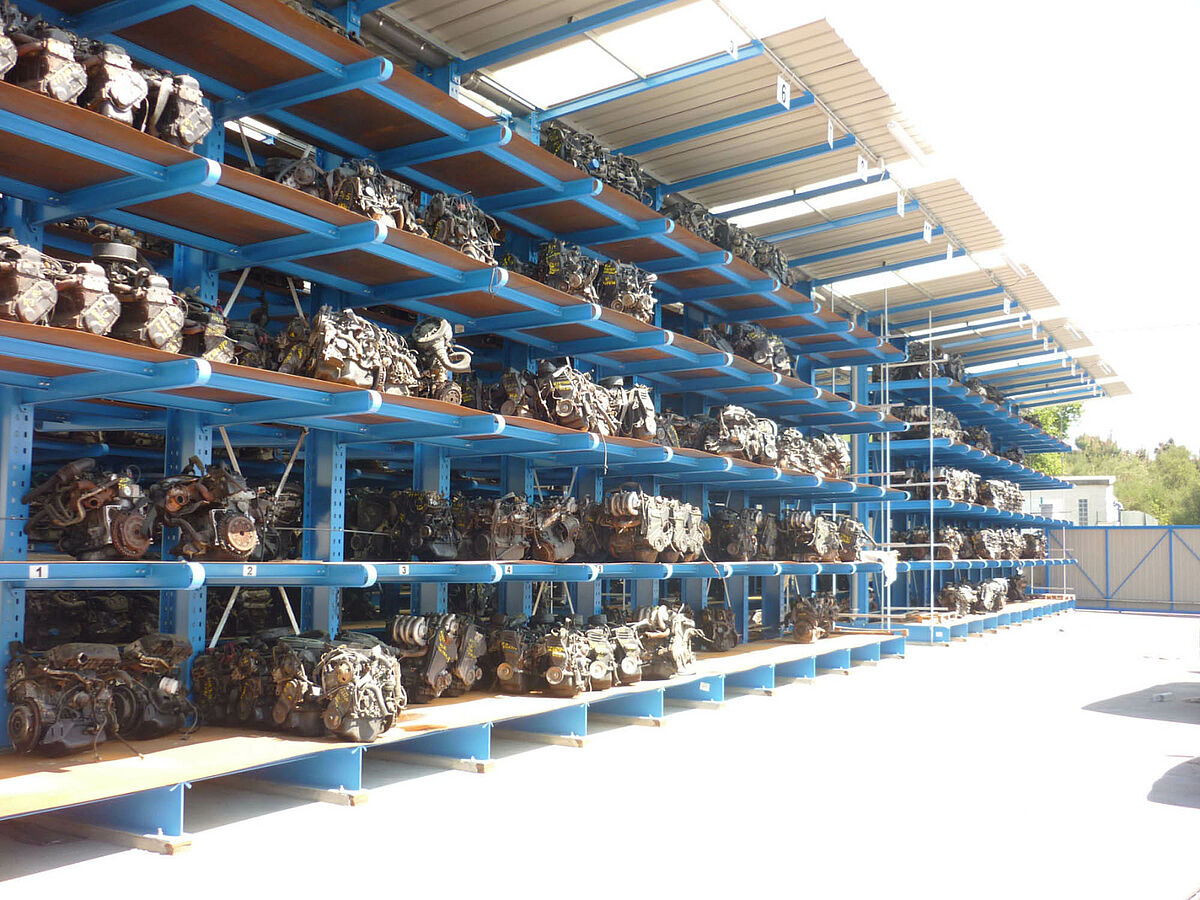 Surtout pour les entreprises de recyclage et récupération, OHRA a développé et optimisé le rayonnage cantilever robuste pour les véhicules et pièces de véhicule. Ce système de stockage dispose de réserves de puissance suffisantes pour le stockage en toute sécurité en hauteur, ainsi que l'accès direct à chaque partie. Cela permet d'obtenir une énorme économie d'espace et de rendre le processus de recyclage plus économique en raison de moins de manutentions. Profils solides en acier laminés à chaud pour les éléments portants du rayonnage cantilever permettant de stocker plusieurs voitures superposées de manière sécuritaire. La haute qualité des montants et des bras du rayonnage garantit une solution durable et économique pour le stockage dans les entreprises de recycleurs automobiles et les services de remorquage.