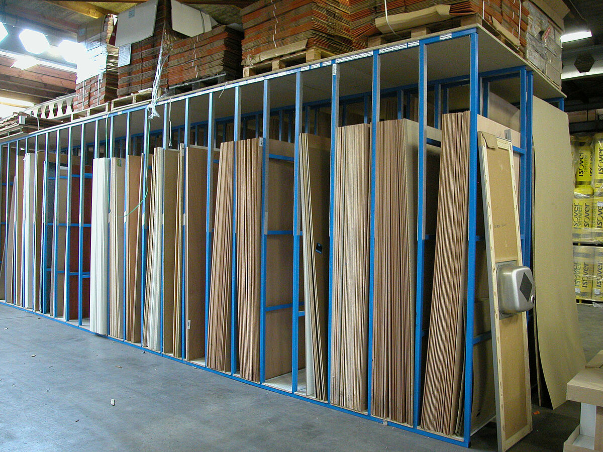 Le stockage vertical OHRA est la solution idéale pour entreposer des produits longs à la verticale tels que des profilés, tubes, liteaux ou panneaux. Le râtelier à panneaux d’aggloméré constitue le premier choix pour le stockage vertical des panneaux d’aggloméré - notamment dans la zone de découpe des produits en bois. OHRA propose les deux systèmes de rayonnages, les rayonnages verticaux et râteliers à panneaux, pour de nombreuses applications et divers secteurs, en particulier dans le domaine de la charpente-menuiserie, les marchés du bois et les distributeurs de matériaux de construction, mais aussi dans le commerce d’appareils sanitaires.